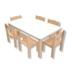 Ein rechteckiger Schreibtisch in einem Kindergarten oder einer Schule ist ein klassisches Möbelstück für ein pädagogisches Umfeld. Dieser Tisch hat eine rechteckige Form mit einer flachen Oberfläche, ideal zum Schreiben, Zeichnen und für andere kreative Aktivitäten. Rechteckige Tische sind funktional und ermöglichen die geordnete Verteilung der Schüler in einer Klasse oder Kindergartengruppe, was die Arbeit der Lehrer und Erzieher erleichtert. Sie sind aus langlebigen Materialien gefertigt, die dem täglichen Gebrauch standhalten und leicht zu pflegen sind. Diese Art von Tischen ist ein Schlüsselelement der Lern- und Spielausstattung in Schulen und Kindergärten und bietet einen praktischen und bequemen Arbeitsplatz für Kinder.