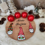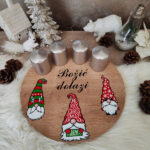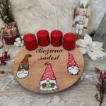 Unesite toplinu i jedinstvenost u svoj dom ove adventske sezone s ovim elegantnim adventskim vijencem. Ovaj moderan i sofisticiran dekor sastoji se od podloge s motivom gnomova, izrađene od kvalitetnog drvenog materijala, na kojoj su prikazane figure tri gnoma, stvarajući božićnu atmosferu punu simbolike.