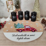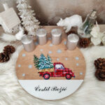 Unesite toplinu i jedinstvenost u svoj dom ove adventske sezone s ovim elegantnim adventskim vijencem. Ovaj moderan i sofisticiran dekor sastoji se od podloge s motivom kamiona koji vozi jelke, izrađene od kvalitetnog drvenog materijala, na kojoj su prikazane i snježne pahuljice, stvarajući božićnu atmosferu punu simbolike.